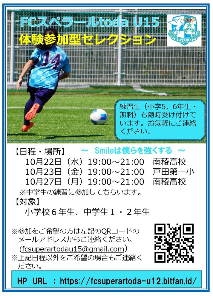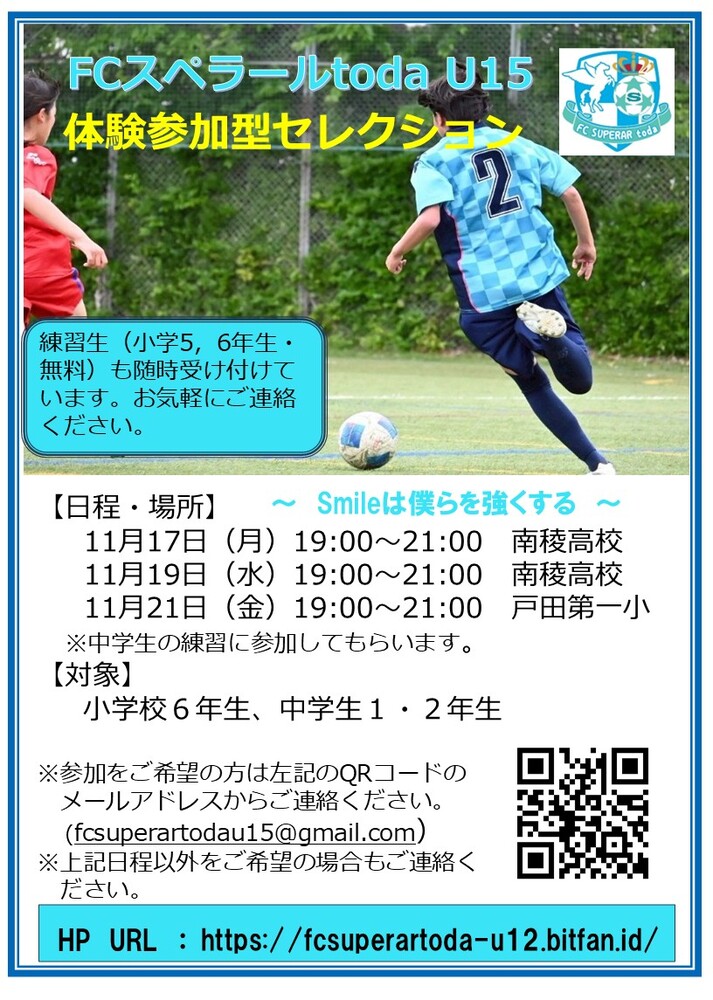 「Smileは僕らを強くする」を合言葉に、「個性を伸ばし、自立した選手の育成」を基本理念として、埼玉県のトップ・関東・全国で通用するチームを目指して活動しています。